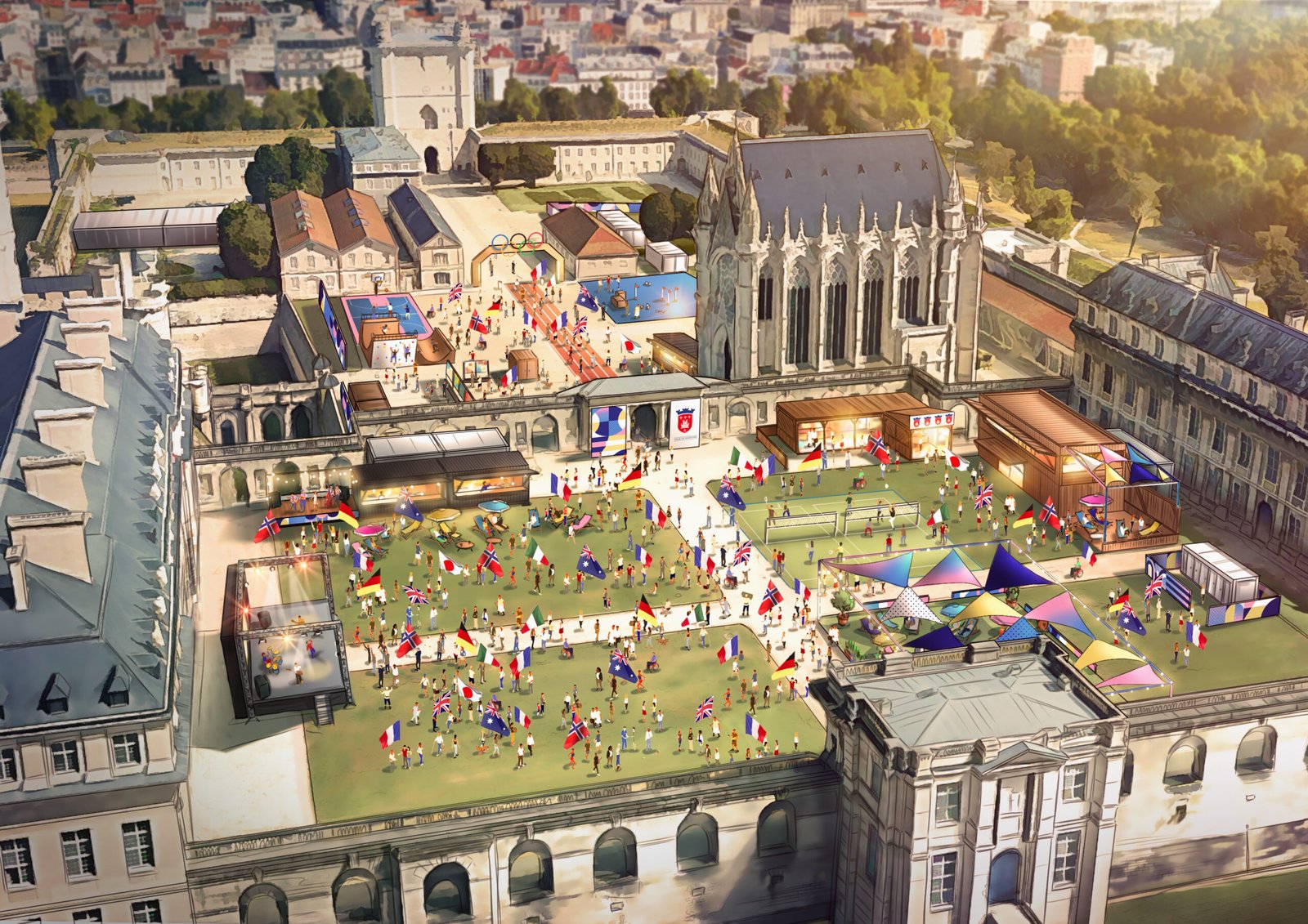 J’ai par ailleurs réalisé un visuel prospectif pour l’arrivée de la flamme olympique, ainsi que des propositions d’implantation de fan zone au Château de Vincennes.