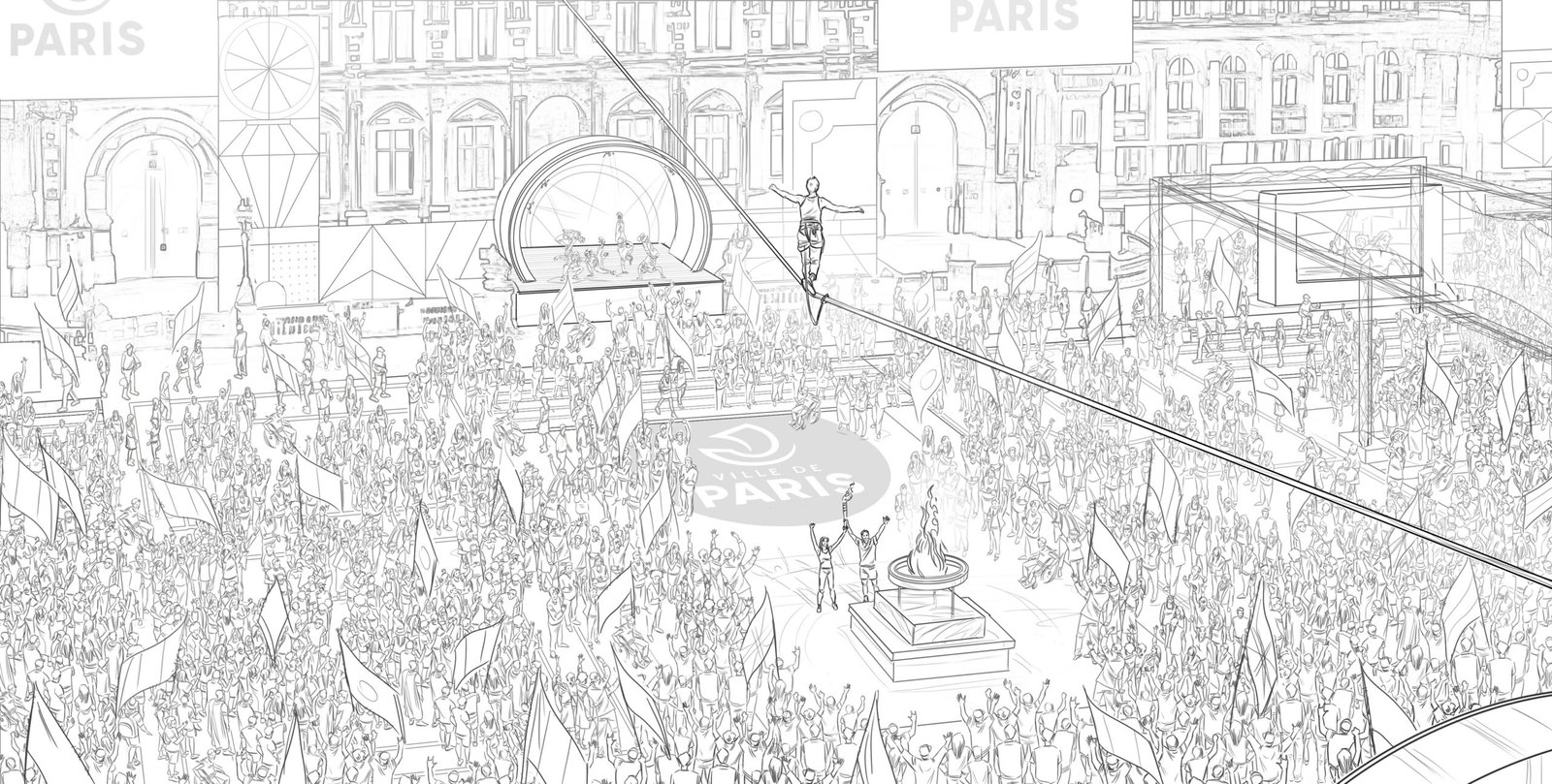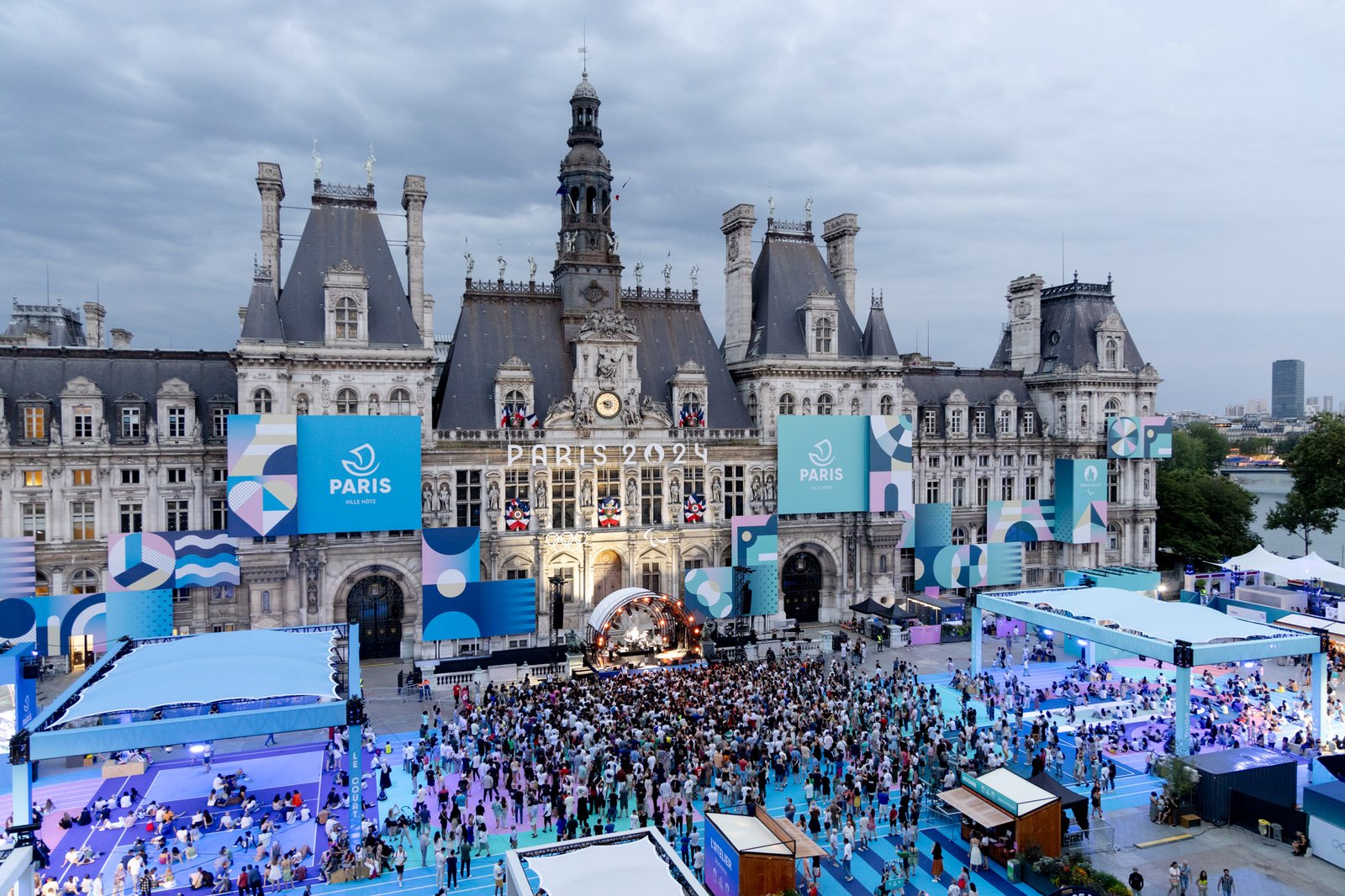 Parmi les projets développés : le visuel officiel « La Terrasse des Jeux à l’Hôtel de Ville », pensé comme le spot sportif et festif au cœur de Paris. Ce lieu de rencontre, destiné aux Parisiens, visiteurs et athlètes, a été imaginé comme un espace hybride mêlant festivités, compétitions et moments de partage, incarnant pleinement l’énergie collective des Jeux.
